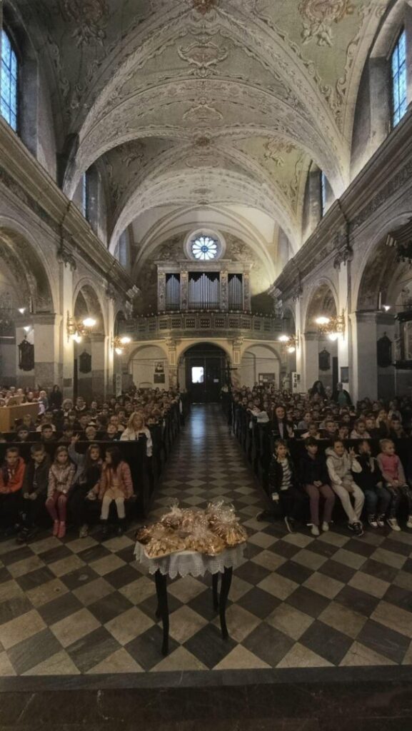 Dana 20. listopada u našoj je školi svečano obilježen Dan kruha i zahvalnosti za plodove zemlje. Prigodan program započeli smo u župi Uznesenja Blažene Djevice Marije. Uz pjesmu koju su pripremili učenici 4. b razreda, recitacije učenika 4. a razreda i svečanu molitvu, pripremljenu hranu blagoslovio je vlč. Sanjin.