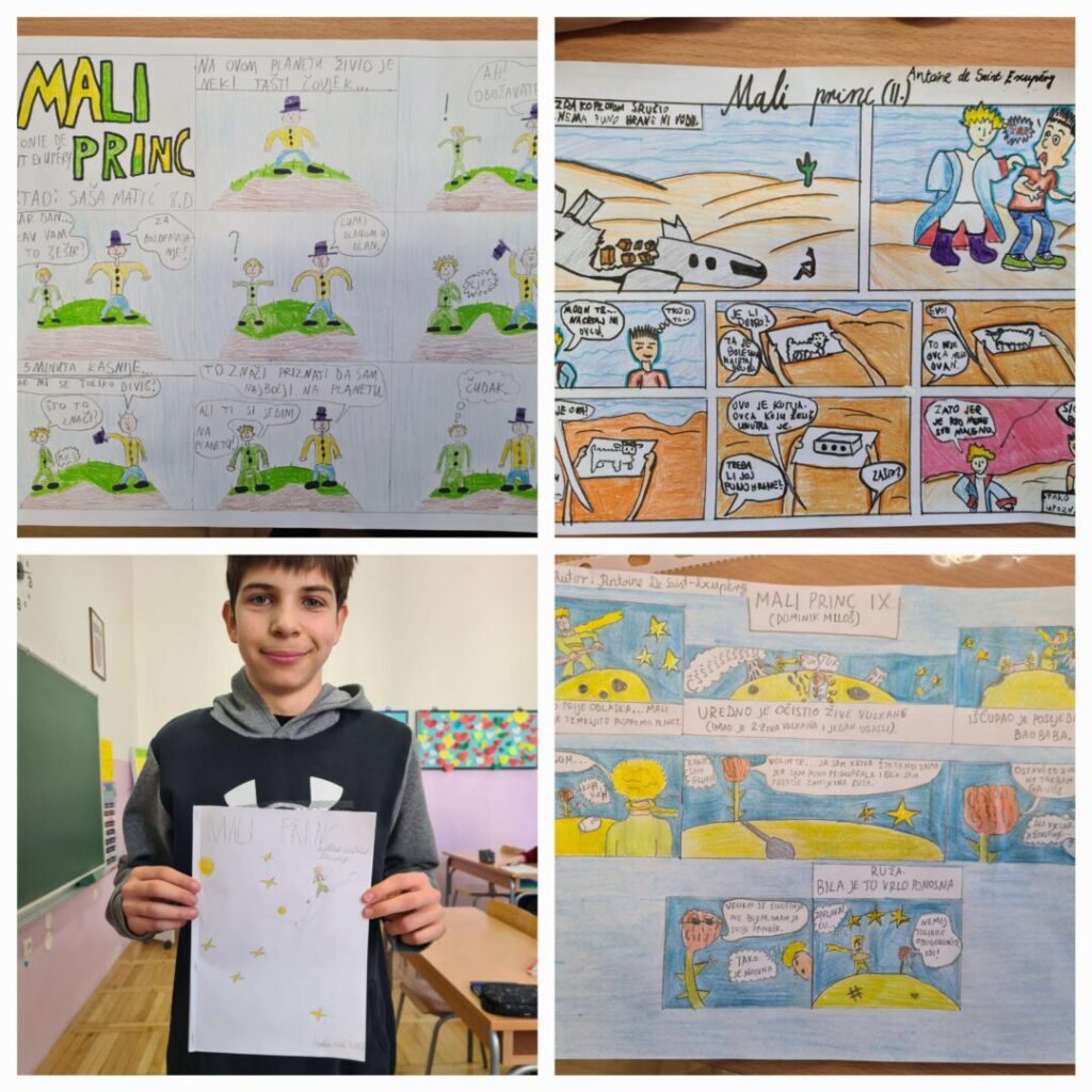 Učenici 8. d razreda u suradničkoj aktivnosti projekta „Lektiru u ruke, čitajmo bez muke 3“ izradili su stripove temeljene na romanu „Mali princ“.
