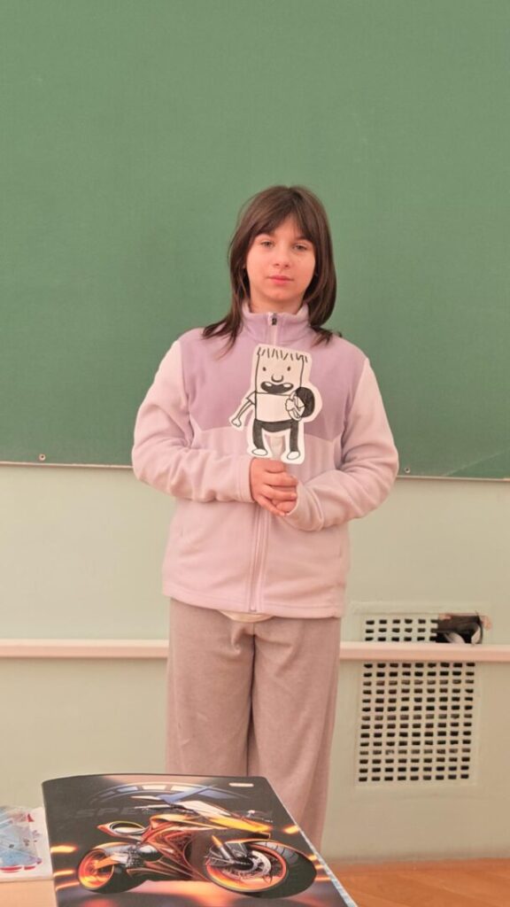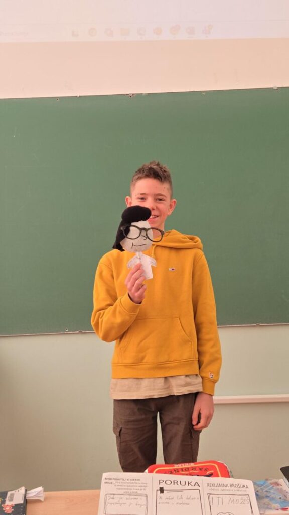 Znamo već da se interpretaciji lektirnoga djela može pristupiti na zabavan način, no ponekad taj kreativni pristup otkrije posve nove dimenzije kreativnosti naših učenika. Zvijezda je rođena i zove se Sebastijan! Učenici 5. c razreda trebali su osmisliti i izraditi lutkicu na temelju jednoga lika iz izvrsnoga serijala Jeffa Kinneyja „Gregov dnevnik“. Da stvar bude još teža, valjalo je predstaviti taj lik monologom lika ne govoreći o kojem se liku radi. Naravno da je to dosta zahtjevno, pogotovo učenicima koji nisu izvorni govornici hrvatskoga jezika. No tim bolje, slušali smo izvedbe i na hrvatskom i na ukrajinskom jeziku. Najveći pljesak i najhrabriji glumac dana bio je Sebastijan koji se uživio u svoju ulogu i predstavio nam Gregovu mamu nasmijavši nas do suza. Bravo, Sebastijane! Čekamo nastavak.