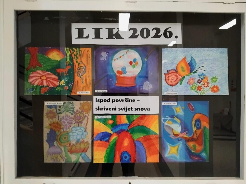 Dana 2. 2. 2026. održana je školska razina natjecanja – izložbe učenika osnovnih i srednjih škola iz područja vizualnih umjetnosti i dizajna LIK 2025./2026. Sudjelovalo je petnaest od devetnaest prijavljenih učenika i učenica od 5. do 8. razreda. Tema ovogodišnjeg natjecanja je bila: S one strane vidljivoga – Ispod površine – skriveni svijet snova. Učenici su svoje likovne radove slikali uljnim i suhim pastelama. Na županijsku razinu natjecanja prošla su prva tri likovna rada, tj. učenice Valentina Souza Paiva Vugrin (6. b), Lana Babić (8. a) i Elea Belušić (8. d). U školskom hodniku je postavljena izložba likovnih radova svih natjecatelja.