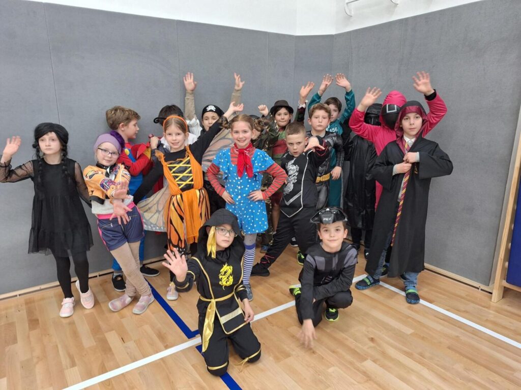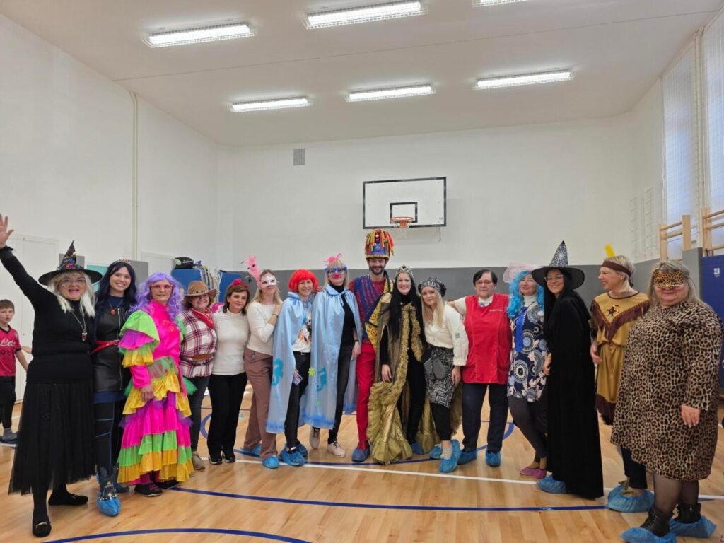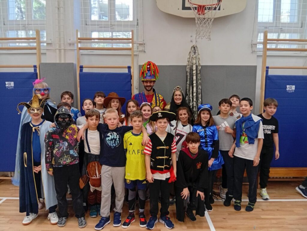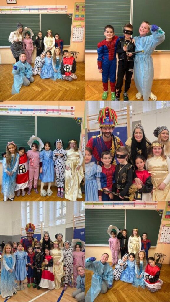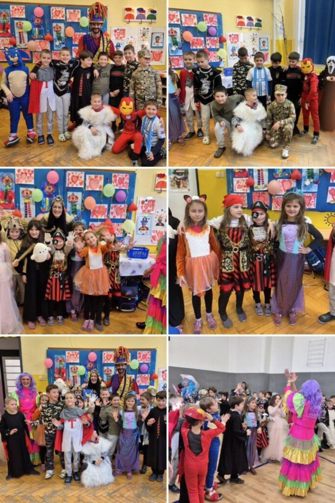 Danas je u našoj školi zavladalo posebno veselje – obilježili smo maškarani petak ispunjen smijehom, glazbom i šarenilom kostima. Školska dvorana pretvorila se u pravo malo karnevalsko središte.