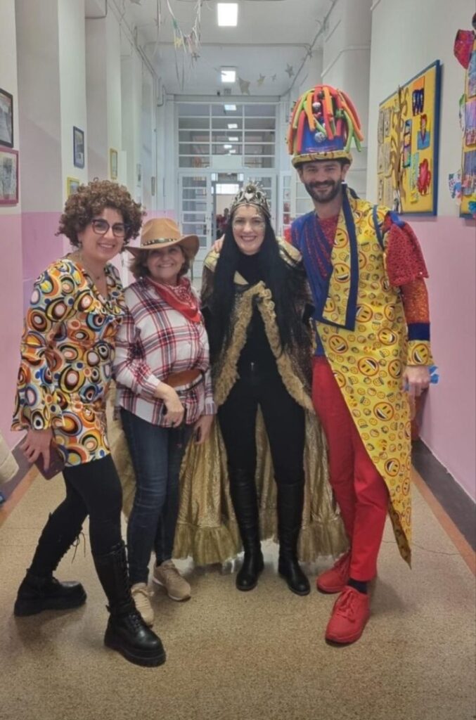 U goste su nam stigli Meštar Sandi i Kraljica karnevala Pia, koji su svojim dolaskom dodatno razveselili učenike i učitelje. Njihova energija, vedrina i duh karnevala brzo su se prenijeli na sve prisutne, a pjesma i ples ispunili su svaki kutak dvorane.
