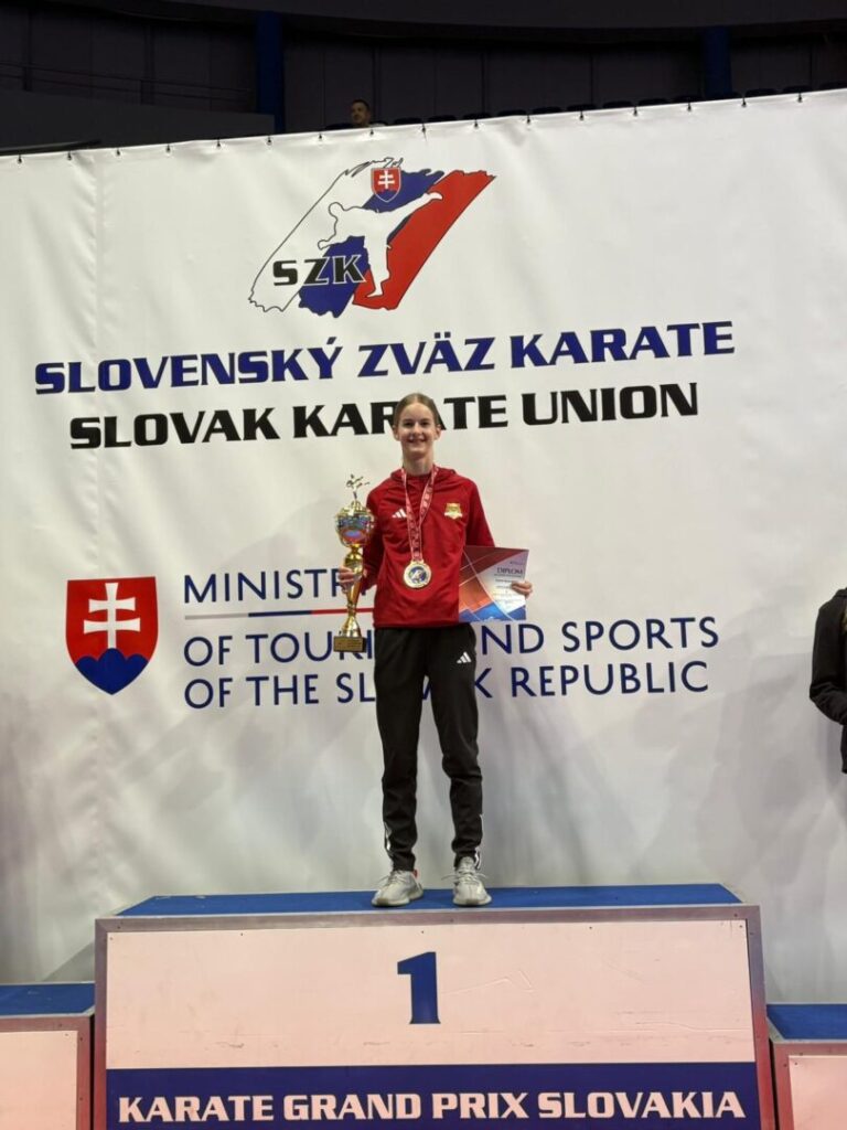 Dora Schubert, učenica 7. e razreda, sudjelovala je na Međunarodnom karate turniru „Grand Prix Slovakia“ koji se održao u Bratislavi od 20. do 22. ožujka 2026. Na turniru je sudjelovalo oko 3000 sportaša iz 45 država, a Dora je u kategoriji djevojčica U14-47 kg osvojila zlatnu medalju i 1. mjesto! Čestitamo ti, Dora!