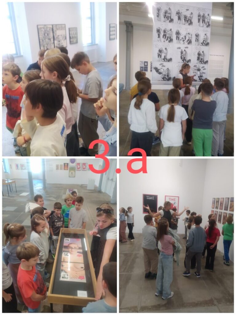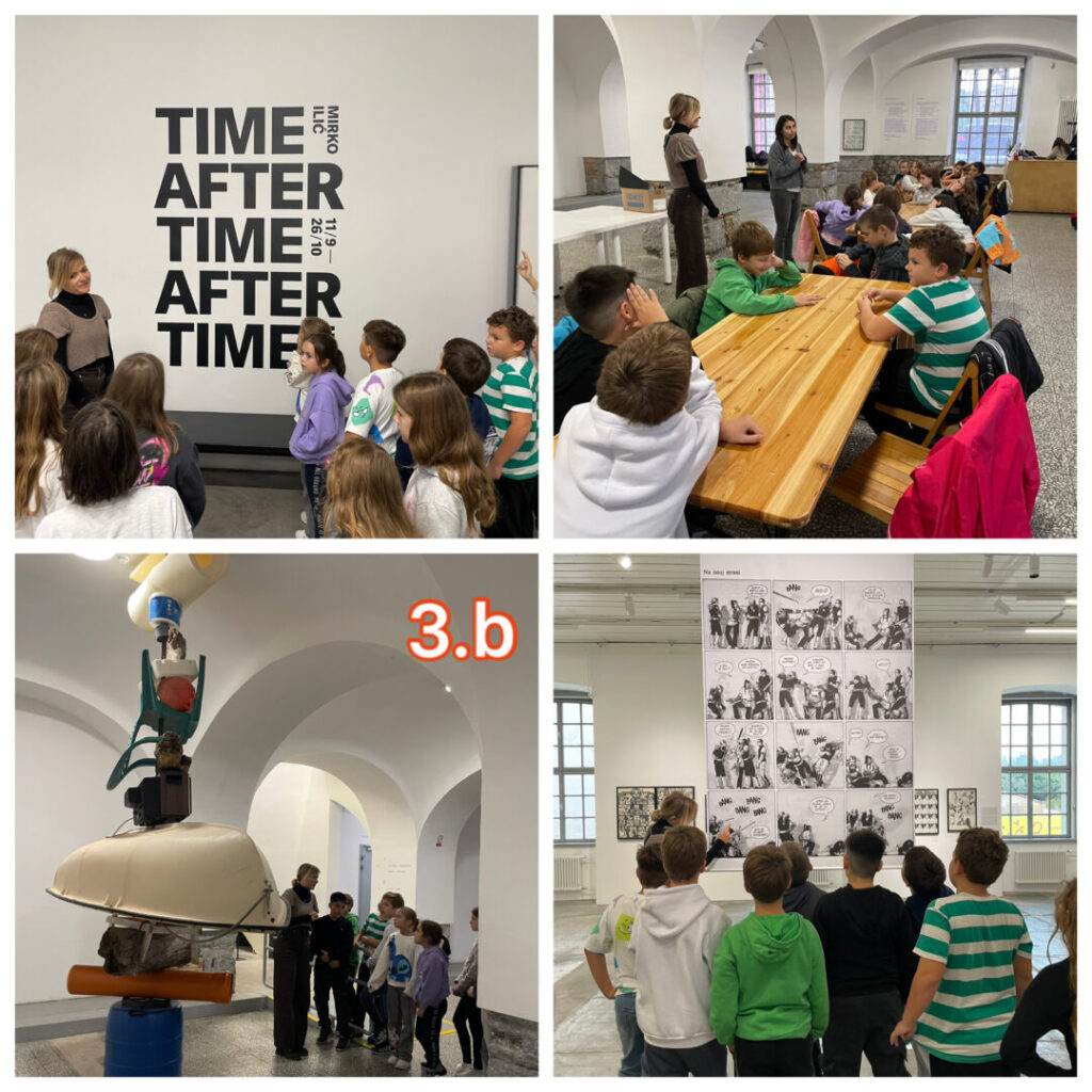 Naši trećaši posjetili su izložbu Mirka Ilića: „Time After Time After Time“ u Muzeju moderne i suvremene umjetnosti. Oduševili su ih maštoviti plakati, stripovi, boje i poruke koje umjetnost može prenijeti.
