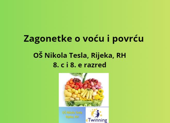 Za potrebe eTwinning projekta „Zdrave prehrambene navike 3“ učenici su izradili prezentaciju sa zagonetkama o voću i povrću. Utvrdili su obilježja zagonetke kao književne vrste, istražili zagonetke i pripremili rješenja, kako bi prezentacija bila korisna i najmlađim projektnim partnerima.